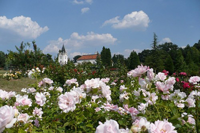 Arborétum založil v roku 1892 Dr. Štefan Ambrózy-Migazzi. K mlynianskemu veľkostatku, získanému sobášom s Antóniou Migazziovou, prikúpil od tajnianskeho grófa Šimona Révaya dubovo - hrabový lesík vo Vieske. Práve tu začal realizovať svoj zámer. Podarilo sa mu sústrediť cudzokrajné dreviny a aklimatizovať ich na naše podmienky. V súčasnosti, svojou plochou 67 ha, Arborétum Mlyňany zasahuje do katastrálnych území dvoch susediacich obcí: Vieska nad Žitavou a Tesárske Mlyňany. Dominantu tohto chráneného areálu tvorí romantický kaštieľ (z r.1894) s charakteristickou vežou (z r.1905). Pestrofarebné skupiny rododendrónov a azaliek vytvárajú prekrásne prostredie pre oddych. Rozsahom svojej unikátnej zbierky cudzokrajných drevín patrí arborétum k najväčším v strednej Európe.